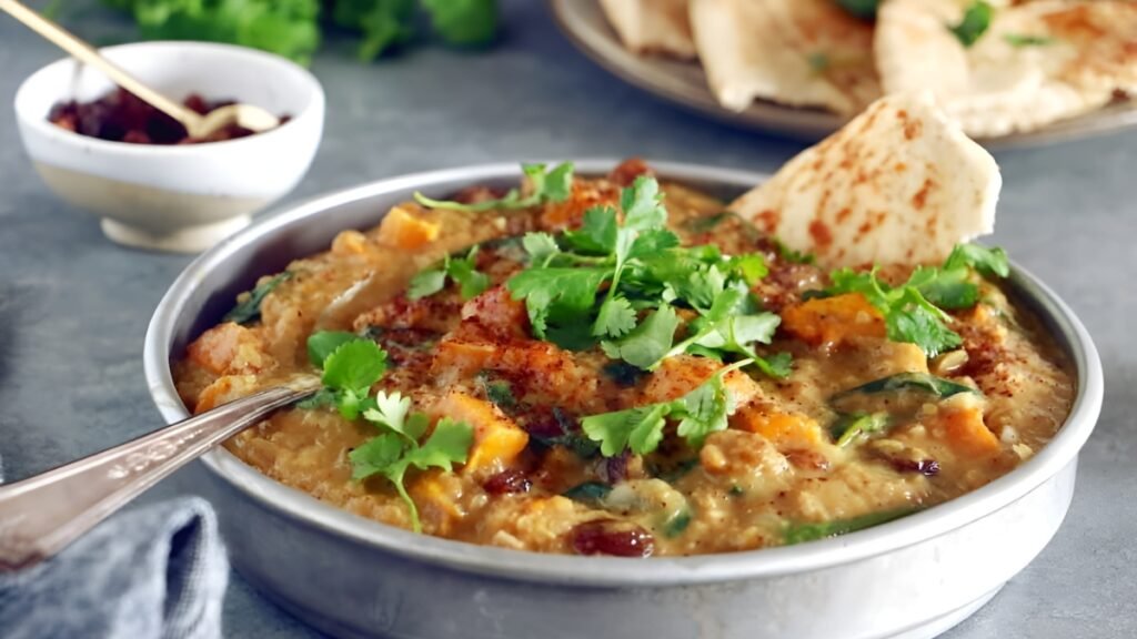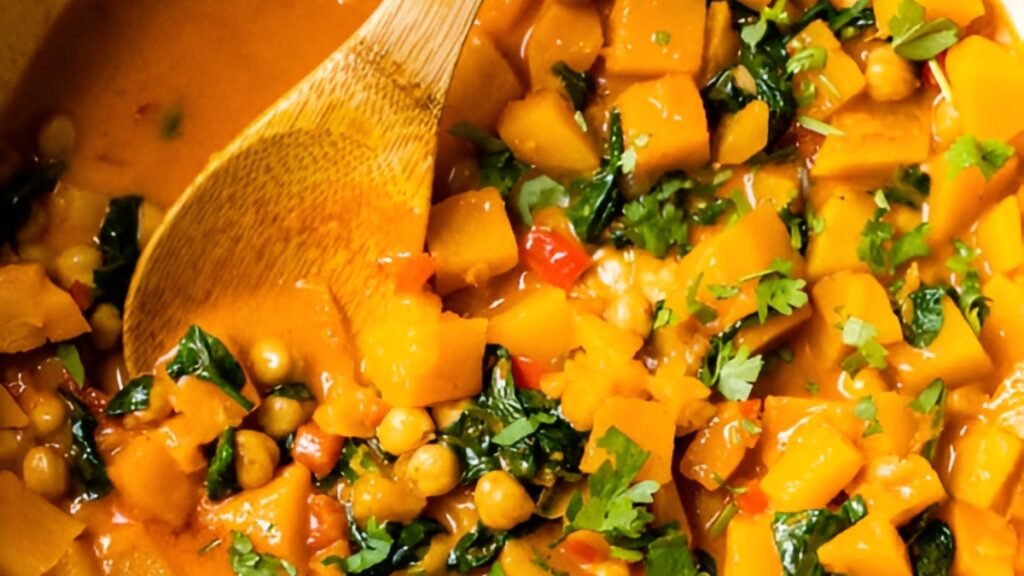 Butternut squash curry is a warm, hearty dish made by simmering butternut squash with spices, coconut milk, and sometimes vegetables or legumes for added texture and flavor. The rich, sweet flavor of the squash pairs perfectly with the creamy, spiced base, making it a comforting and savory option. It’s a great vegetarian or vegan alternative to traditional meat-based dishes, and it adds vibrant color to your table.