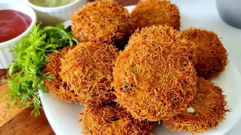 These cutlets are lightly pan-fried or shallow-fried, making them both crispy on the outside and soft inside. They pair beautifully with a tangy-spicy dip that brings the whole dish to life.