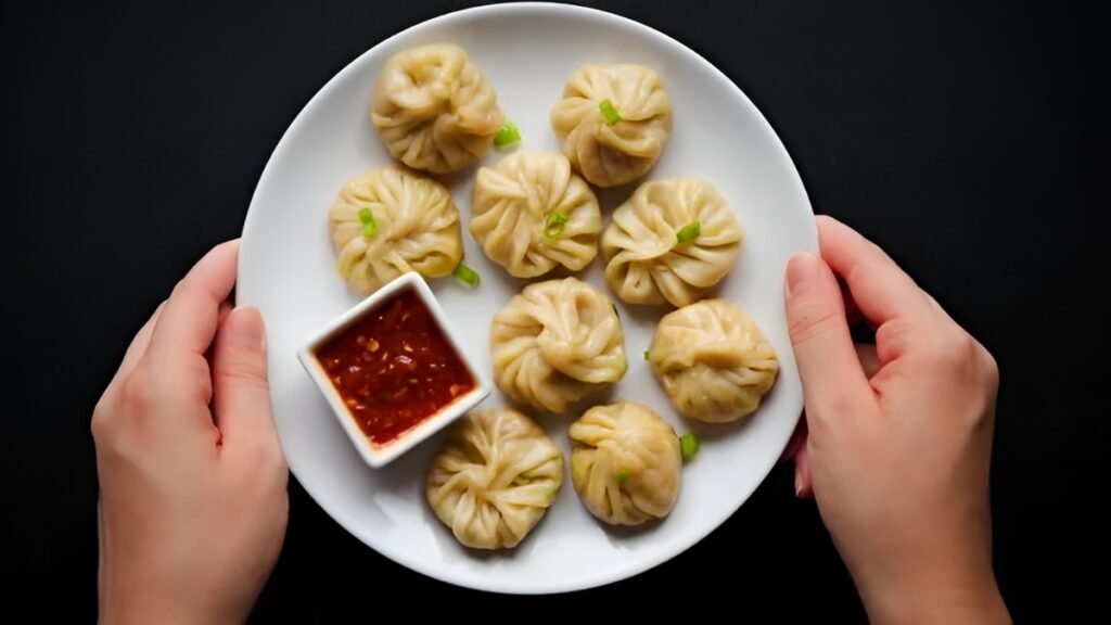 Serve the hot momos with the spicy dip on the side. Garnish with spring onions or sesame seeds if you’re feeling fancy. They’re best enjoyed fresh and warm.